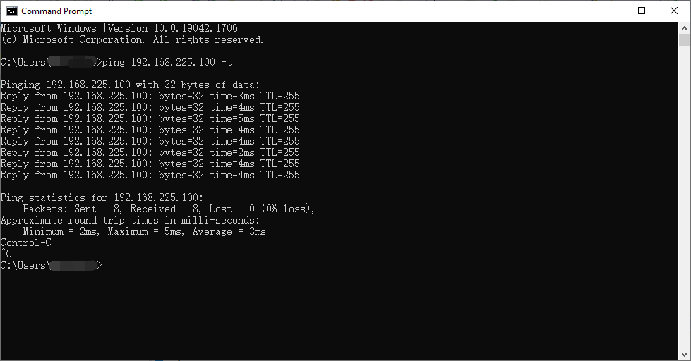 Open the terminal to ping 192.168.225.100, you should be able to see the the reply, showing that the example works.