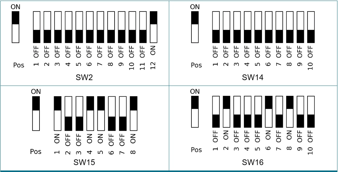 • ボードの動作モード選択および特定の設定の変更用の複数のDIPスイッチ