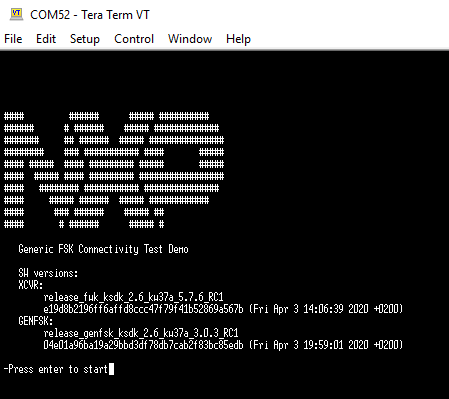 この出力が表示されない場合は、ターミナルの設定と接続を確認してください\docs\wireless\GENFSK\Generic FSK Link Layer Quick Start Guide.pdf ) を参照してくださいここでは以下の手順について説明します。