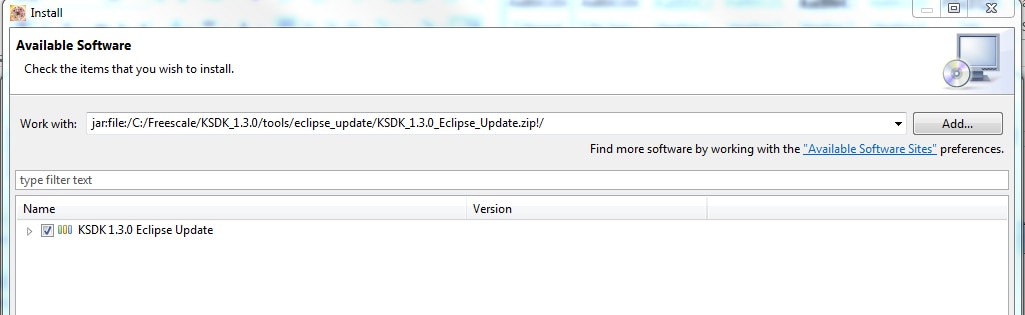 Check the box to the left of the KSDK Eclipse update and click the "Next" button in the lower right corner