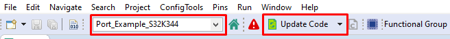 S32DSを開き、メニューから[File(ファイル)]>[New(新規)]>[S32DS Project from Example(サンプルに基づいたS32DSプロジェクト)]の順に選択します。RTDのサンプル・コードの1つを選択します。高レベルAPIのサンプルまたは低レベルAPIのサンプルを選択できます。例:Port_example_K344