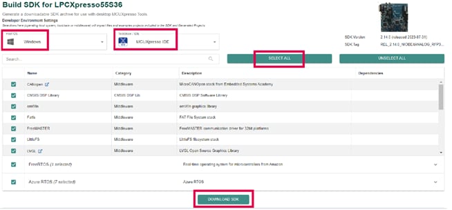 以下の手順と図は、LPC5536-EVKでのセットアップ・プロセスを示します。これは、LPC5536/LPC55S36ベースのEVSE-SIG-BRD2X用のSDKとして使用できます。