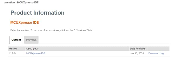 注:必ず最新バージョンのMCUXpressoをダウンロードしてください。