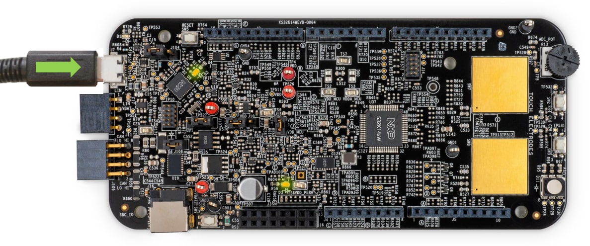 マイクロUSBケーブルを使用してS32K14WEVB-Q064ボードをPCに接続します。