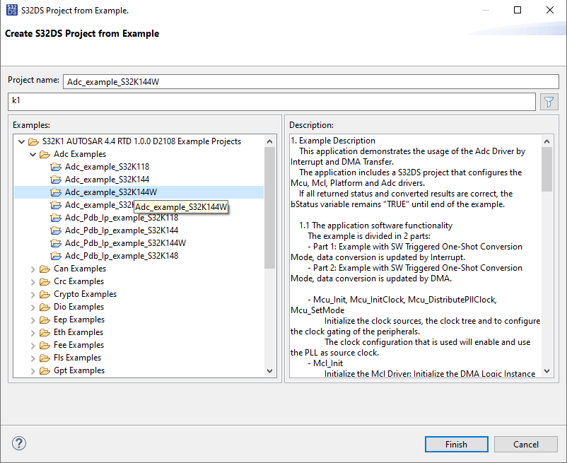 SDKまたはRTDからサンプルADCプロジェクトを選択します