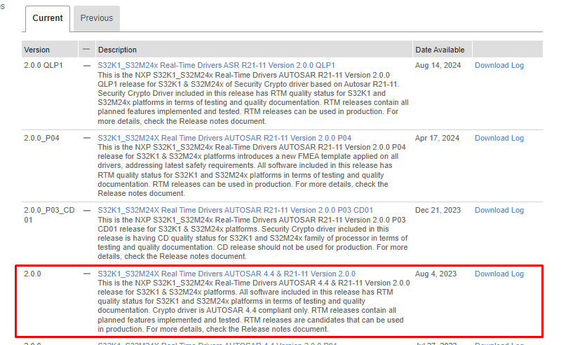 S32K1/S32M27xバージョン2.0.0用のRTDをダウンロードします