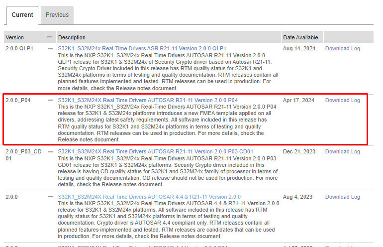 RTD for S32K3 and S32M27x version 4.0.0 patch P20をダウンロードします。