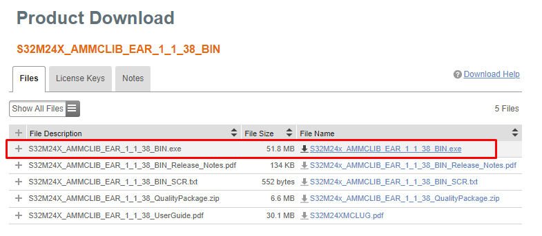 S32M24X_AMMCLIB_EAR_1_1_37_BINをダウンロードしてインストールします。