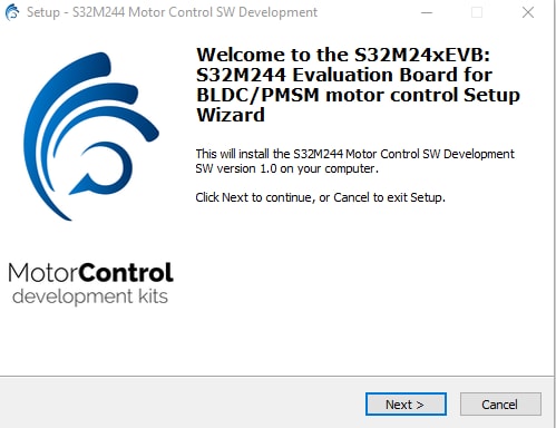S32M244モーター制御アプリケーション・ソフトウェアをダウンロードしてインストールします。