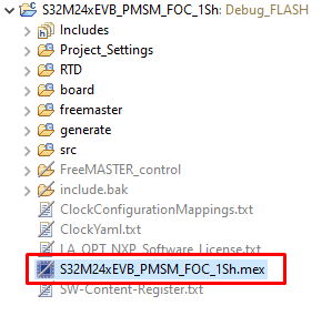 1. プロジェクト構造を展開して下位レベル・ドライバを表示し、*.mexファイルをダブルクリックして「S32設定ツール」のプロジェクト設定を開きます GS-S32M24XEVB-IMG24