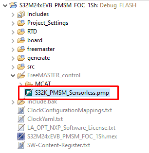 *.pmpx FreeMASTERプロジェクト\FreeMASTER_controlを開くには、[File(ファイル)]>[Open Project(プロジェクトを開く)]の順にクリックします。