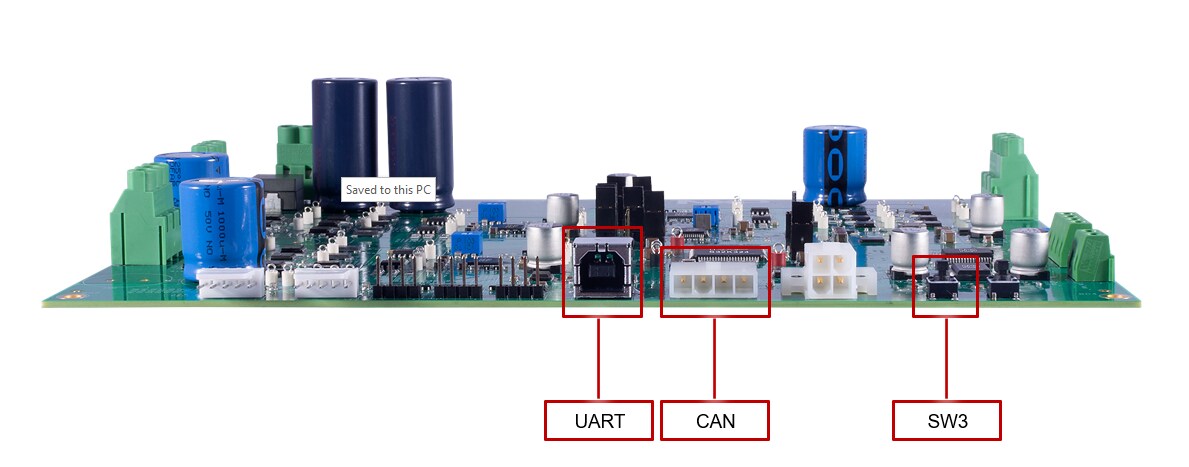 モータを作動させるには、UART上のFreeMASTER、CAN、およびSW3ボタンの3つの方法があります。