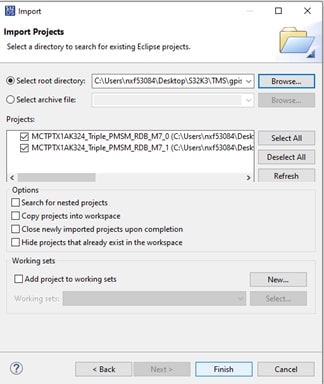 インストールされているアプリケーション・ソフトウェア・プロジェクトをS32 Design Studioにインポートします。