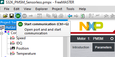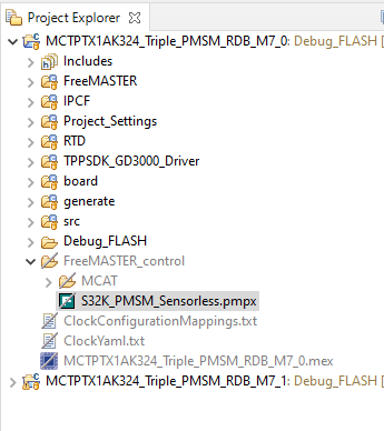「MCTPTX1AK324_Triple_PMSM_RDB_M7_0 \FreeMASTER_control」フォルダの「S32K_PMSM_Sensorless.pmpx」ファイルを開きます。