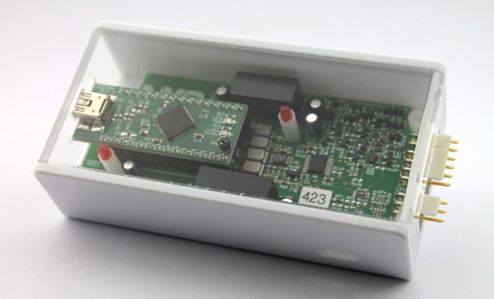 The TEA2016DB1519v2 demo board contains a TEA2016AATdev sample that can communicate via I²C during operation. It is connected to the interface with a 3-pin connection.