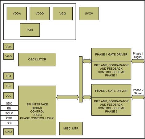 The ASL2500SHN is a highly integrated and flexible two-phase DC-to-DC boost converter IC that has an SPI interface allowing control and diagnostic communication with an external MCU. It is a two-phase converter which can have two independent outputs. The flexible driver can be configured, via the SPI interface, as a single output converter, or with multiple combinations of number of outputs and phases. Read more on the ASL2500SHN Data Sheet [English].