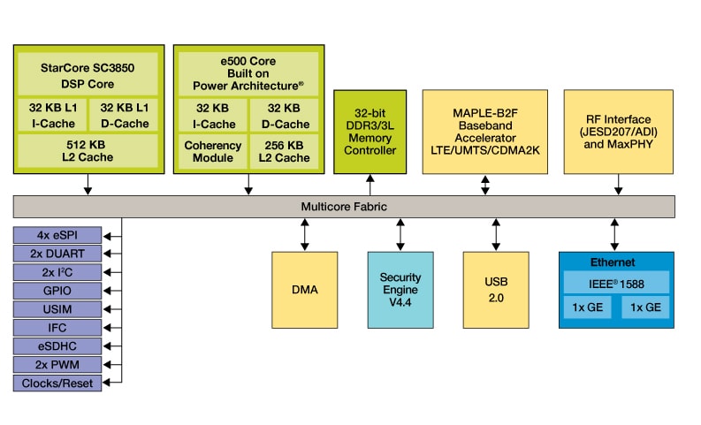 The BSC9131 device combines Power e500 and StarCore® SC3850 core technologies with MAPLE-B2F specialist DSP acceleration processing, addressing the need for a high-performance, low-cost, integrated solution, that handles a broad range of specialist DSP functions with complimentary high-performance general purpose processing.