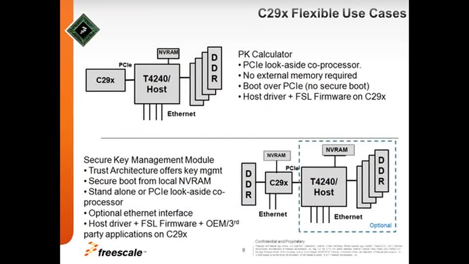 The NXP® C29x crypto coprocessor family consists of three high performance crypto coprocessors – the C291, C292 and C293 – which are optimized for public key operations targeting network infrastructure across the enterprise and the data center.