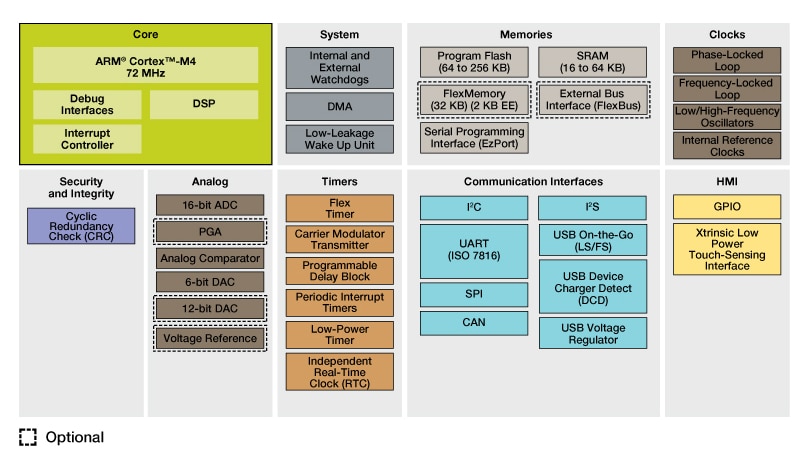 The Kinetis® K20 72 MHz MCU family offers a scalable entry point into the mid-performance Kinetis portfolio with various levels of integration, featuring high-precision analog integration and flexible low-power.