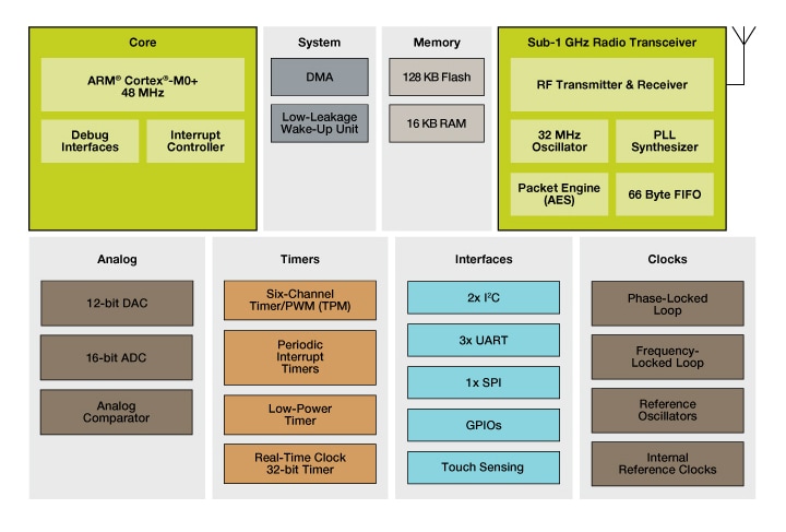 The Kinetis® KW0x wireless MCU family embeds a rich set of peripherals with a high-performance bi-directional sub-1 GHz radio, capable of operating over a wide frequency range in the license free industrial, scientific and medical (ISM) frequency bands.