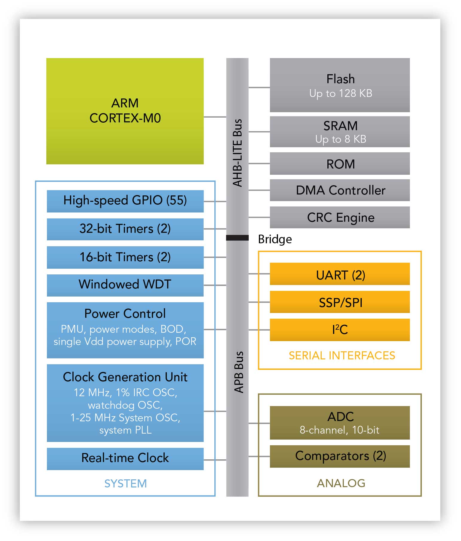 The LPC1225FBD48 is an Arm® Cortex®-M0 based microcontroller for embedded applications featuring a high-level of integration and low-power consumption. The LPC1225FBD48 operates at CPU frequencies of up to 30 MHz and includes up to 80 kB of Flash memory and 8 kB of data memory. The peripheral complement of the LPC1225FBD48 includes a DMA controller, a CRC engine, one Fast-mode Plus I²C interface, one RTC, one SSP/SPI interface, two UARTs, four general purpose timers, a 10-bit ADC, two comparators, and up to 39 General Purpose I/O (GPIO) pins. The LPC1225FBD48 is available in LQFP48 package.