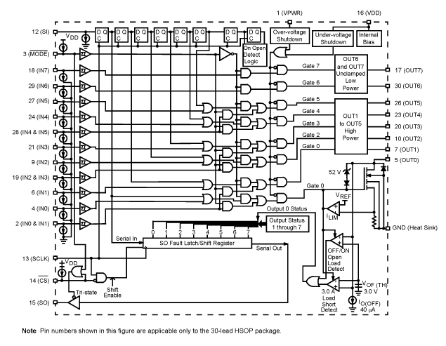 The NXP® MC33882 is a six-output, low side switch that controls system loads up to 1.0 A. The six outputs can be controlled via both serial peripheral interface (SPI) and parallel input control, ideal for fault tolerant system applications.