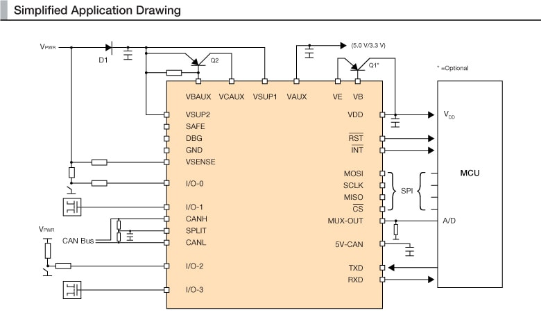 The NXP® MC34904 is an analog companion chip for the MCU and combines several voltage regulators, interface, monitoring and control, and other features to enhance present module designs targeting the industrial market.