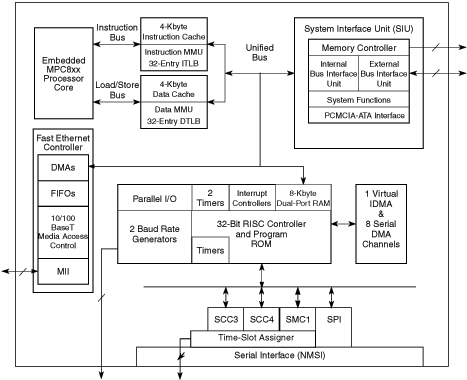 The MPC853T is a Power Architecture-based derivative of NXP® Semiconductors's Quad Integrated Communications Controller (PowerQUICC).. The CPU on the MPC853T is the MPC8xx core, a 32-bit microprocessor built on Power Architecture technology, incorporating memory management units (MMUs) and instruction and data caches.