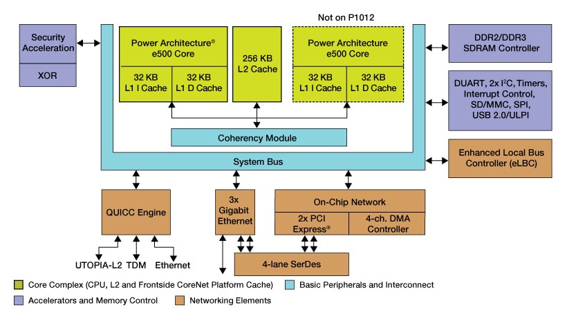 The QorIQ® P1 platform series, which includes the P1021 (dual-core) and P1012 (single-core) communications processors, offers the value of extensive integration and extreme power for a wide variety of applications in the networking, telecom, defense and industrial markets. Based on 45 nm technology for low-power implementation, the P1012 and P1021 processors provide single- and dual-core solutions for the 533 MHz to 800 MHz performance range, along with advanced security and a rich set of interfaces.