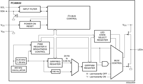 PCA9632は、ファストモード・プラス (Fm+) ファミリに新たに加わった製品です。Fm+デバイスは、より高い周波数(最大1 MHz)とより高密度のバス動作(最大4000 pF)を実現します。
