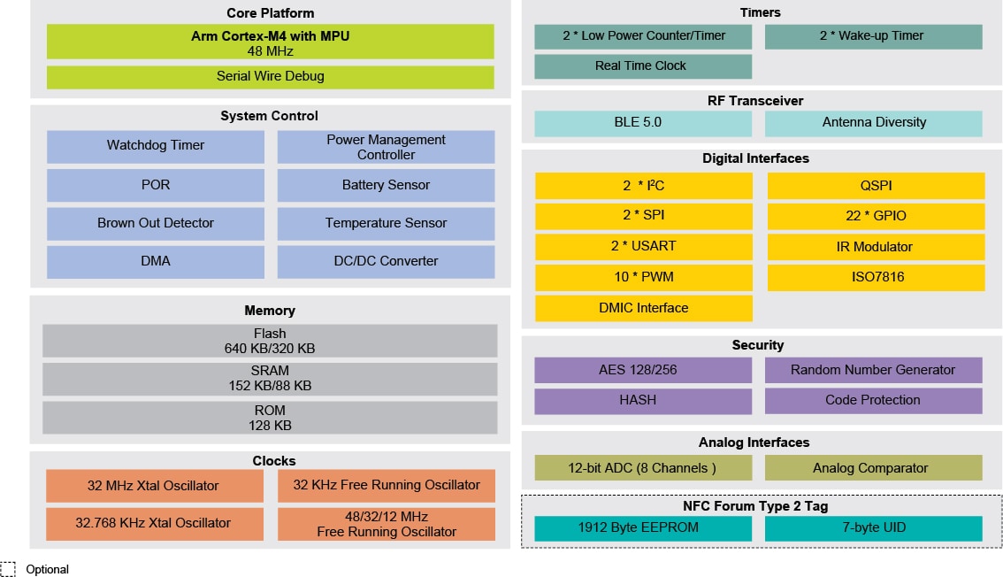 The QN9090 and QN9030 are the latest microcontrollers in the QN series of Bluetooth low energy devices that achieve ultra-low-power consumption and integrate an Arm®Cortex®-M4 CPU with a comprehensive mix of analog and digital peripherals. With support for up to 640KB onboard flash and 152 KB SRAM, the memory integration provides room and flexibility for complex applications and safe Over-the-Air (OTA) updates. QN series devices have a rich set of MCU peripherals including multiple serial communication interfaces. Within the QN series the QN9090T and QN9030T integrate NFC NTAG to support use cases such as out-of-band pairing. By tapping a device based on the QN9090T with an NFC reader device, such as a smart phone or tablet, a Bluetooth LE connection can be established quickly simplifying the pairing process.