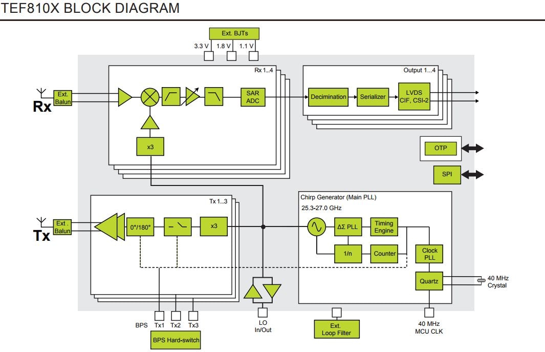 TEF810x完全統合型77 GHzレーダー・トランシーバ