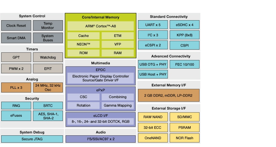 Multimedia Applications Processors - Integrated Electronic Paper Display (EPD), High Performance, Arm® Cortex®-A8 Core