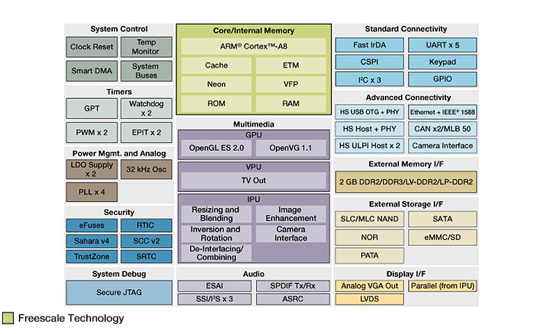 The i.MX534 applications processor offers advanced performance, connectivity and graphical user interface functionality necessary to drive next generation automotive instrument cluster and navigation systems. The i.MX534 processor is ideal for applications that require high performance user interfaces with 2D and 3D graphics, single or dual high resolution displays, and a high level of system integration. Building on the success of the i.MX535 in the consumer market, the automotive family of i.MX53 processors will bring advanced consumer electronics user experiences and device connectivity into the vehicles of the future. Currently sampling to high volume customers.