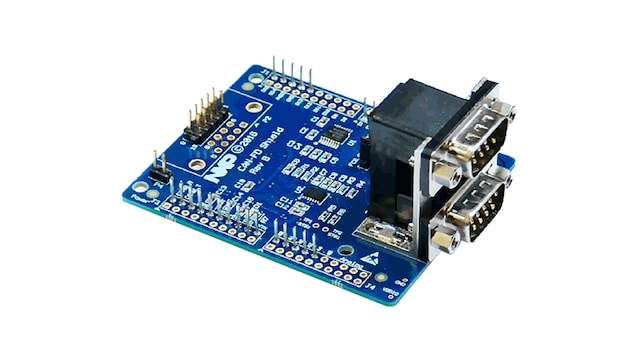 The OM13099 CAN-FD shield provides a dual CAN/CAN-FD transceiver for use with CAN-enabled LPCXpresso V3-style boards. The board features the NXP TJA1059 dual transceiver, plus an RS232C transceiver. This shield board is compatible with all the LPCXpresso546xx boards (although LPCXpresso54608 only supports classic CAN, not CAN-FD).