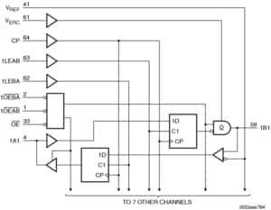 The device is configured as two 8-bit transceivers that share a common clock and a leader output enable pin, but also have individual latch timing and output enable signals. D-type flip-flops and D-type latches enable three modes of data transfer; Clocked, Latched, or Transparent. The GTL1655 provides the ideal interface between cards operating at LVTTL levels and backplanes using GTL/GTL+ signal levels. The combination of reduced output swing, reduced input threshold levels and configurable edge control provides the higher speed operation of GTL/GTL+ backplanes.