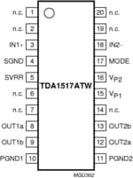 The TDA1517ATW is an integrated class-AB output amplifier contained in a plastic heatsink thin shrink small outline package (HTSSOP20). The device is primarily developed for multimedia applications.