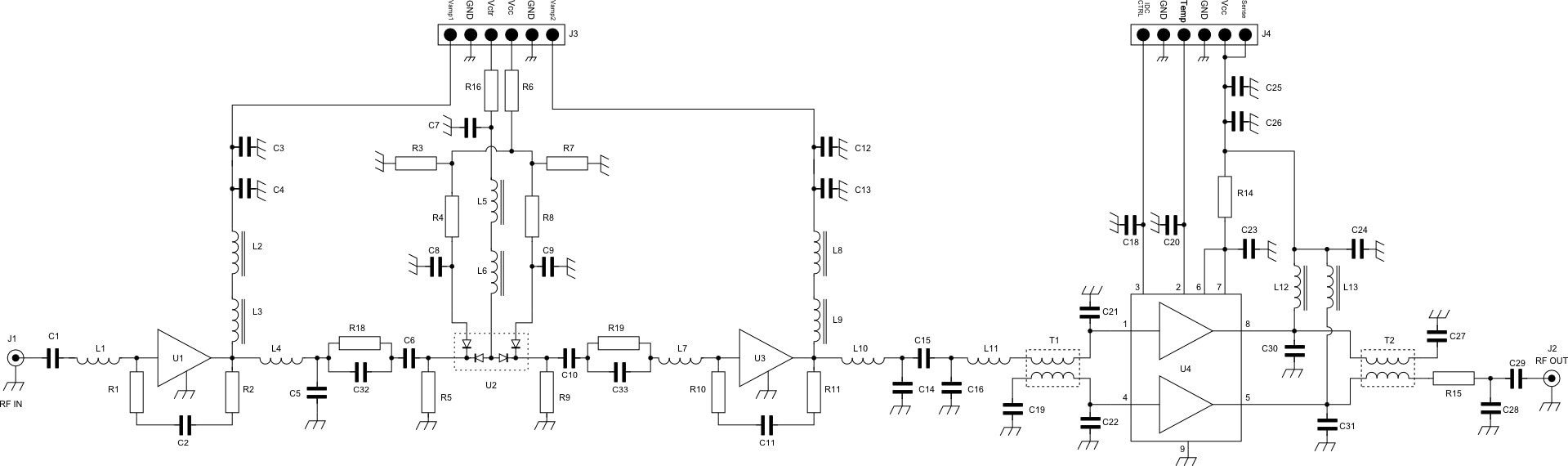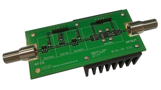 The BGA30xx Optical Mini Node kit enables the user to evaluate the BGA3018, BAP70Q, BGA3015, and BGA3022 in one system solution. It contains an RF board matched to 75 Ohms from 40 MHz up to 1200 MHz with F-connectors. The board operates between 5 V and 8 V.