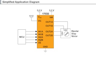 The NXP® MPC17533 is a monolithic dual H-Bridge IC that is ideal in portable electronic applications for controlling stepper or Brush DC-motors, such as camera lens shutters and optical disk drives.
