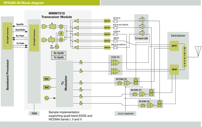 NXP®’s RFX300-30 is the world's smallest 3G RF subsystem. It is a multimode, multiband UMTS/EDGE solution in a single integrated package with the benefit of smart RF.