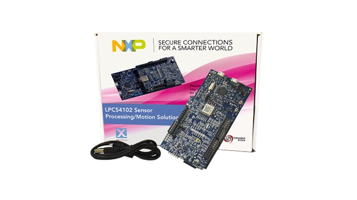 The LPCX54102 Sensor Processing/Motion Solution has been developed by NXP® and its partners to provide all that you need to develop an always-on sensor processing product. The Solution combines an LPCX54102 board and a Sensor Shield Board (SSB), plus application software and sensor fusion software from Bosch Sensortec to provide a highly capable platform for always-on sensor processing.