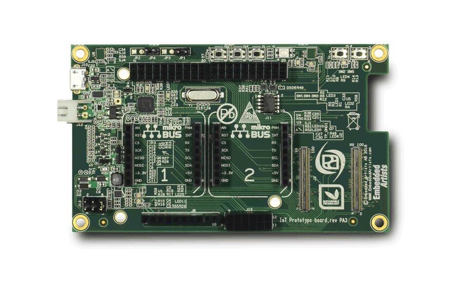 The mini IoT baseboard has been designed by Embedded Artists in partnership with NXP to complement NXP’s MCU IoT Modules (such as the LPC54018 IoT module OM40007), enabling easy-to-use, low-cost IoT application development. This baseboard provides an onboard accelerometer, buttons, LEDs and sites for the highly popular Arduino® UNO and Mikroe Click add-on boards, plus connections for ePaper displays from Pervasive Displays (available separately). The board includes support for a rechargeable lithium battery, enabling fully self-contained IoT system prototypes to be developed in a compact form factor.