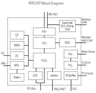 The MPC107 PCI Bridge/Integrated Memory Controller provides a bridge between the Peripheral Component Interconnect, (PCI) bus and Our MPC603e, MPC740, MPC750, MPC745, MPC755, MPC7400 and MPC7410 Power Architecture host processors. PCI support allows system designers to design systems quickly using peripherals already designed for PCI and the other standard interfaces available in the personal computer hardware environment. The MPC107 provides many of the other necessities for embedded applications including a high-performance memory controller and dual processor support, 2-channel flexible DMA controller, an interrupt controller, an I 2 O-ready message unit, an inter-integrated circuit controller (I 2 C), and low skew clock drivers. The MPC107 contains an Embedded Programmable Interrupt Controller (EPIC) featuring five hardware interrupts (IRQ’s) as well as sixteen serial interrupts along with four timers. The MPC107 uses an advanced, 2.5-volt HiP3 process technology and is fully compatible with TTL devices.