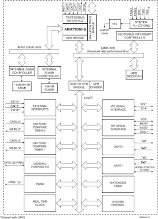 The UART are based on a 16/32-bit Arm7TDMI-S™ CPU with real-time emulation and embedded trace support, together with 128 kB of embedded high speed flash memory. A 128-bit wide memory interface and a unique accelerator architecture enable 32-bit code execution at maximum clock rate. For critical code size applications, the alternative 16-bit Thumb mode reduces code by more than 30 pct with minimal performance penalty.