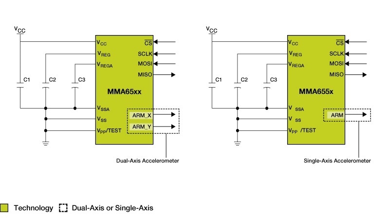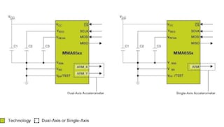 The MEMS-based MMA65xxKW single- and dual-axis inertial sensors target the main electronic control unit (ECU) for automotive airbag systems.