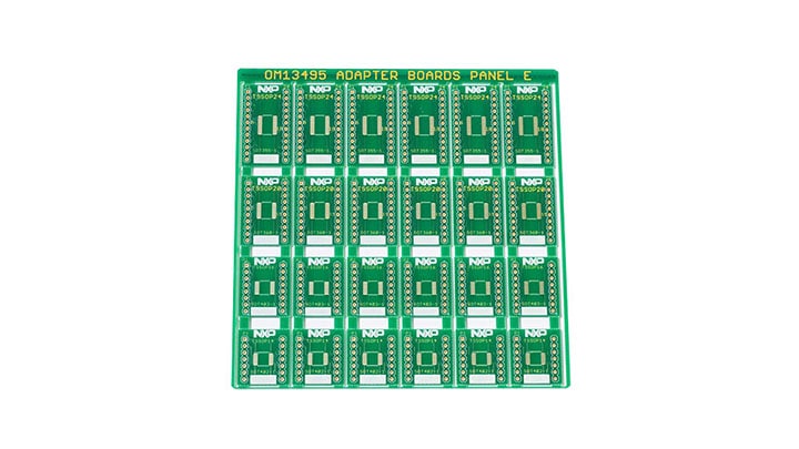 The OM13495 allows one to evaluate small, surface mount devices by breaking out the package leads to 100 mil centers pins, emulating a DIP package. The OM13495 supports the following packages: TSSOP24, (SOT355), TSSOP20, (SOT360), TSSOP16, (SOT403), TSSOP14, (SOT402).
