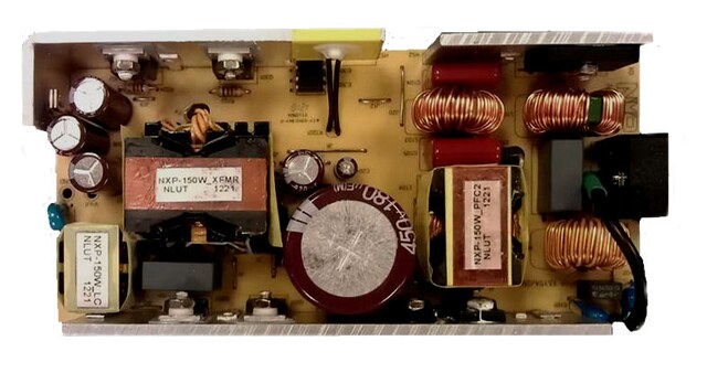 This resonant LLC board demonstrates a EuPlot6 compliant, compact All-in-One adapter. The 150W All-in-One adapter is using the TEA1716 resonant combo controller and a TEA1795 SR controller to increase the efficiency up to 92%. The typical output voltage is 19.5V.