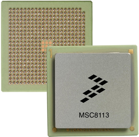 The MSC8113 is a highly integrated system-on-chip (SoC) that combines three StarCore® SC140 extended cores with a RS-232 serial interface, four time division multiplexed (TDM) serial interfaces, 32 general-purpose timers, a flexible system interface unit (SIU), an Ethernet interface and a multi-channel DMA controller. The three extended cores can deliver a total 3600/4800 DSP MMACS performance at 300/400 MHz.