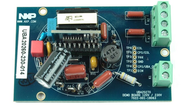 The UBA20260 circuit is a half-bridge driver IC setup to drive a typical 23 W burner with a lamp current of about 240 mA. Similar lamp types with a nominal lamp power of 20 W can also be driven. The total power drawn from the mains is about 23 W at a nominal mains voltage of 230 V or 120 V (RMS). The UBA20260 board can easily be configured to drive different Compact Fluorescent Lamps (CFL) of different power ratings. Driving different CFL is possible by changing the inductor tap and installing a different lamp capacitor.クイック・リファレンス ドキュメンテーションの種類