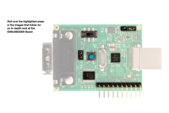 The EVBUSB2SER board is part of Our solutions for communication and provides another way to connect your embedded system via USB.